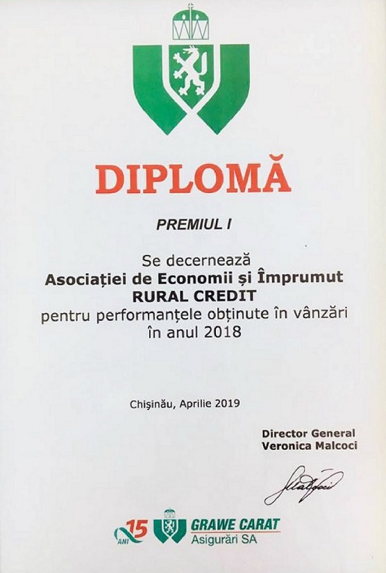 Ne bucurăm de colaborarea prosperă cu Cea Mai Buna Companie de Asigurări din Republica Moldova. Împreuna cu Grawe Carat am reușit sa ne clasăm pe prima pozitiție după valoarea polițelor de asigurare emise între asociațiile de economii și împrumut. Tindem să promovăm în continuare necesitatea asigurărilor și a beneficiilor pe care le aduce!